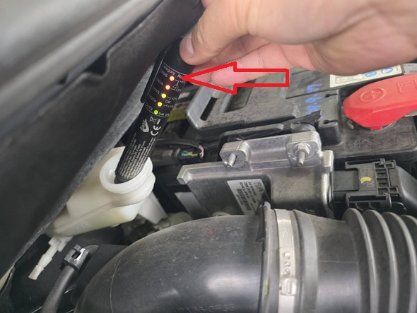 車検でご入庫の際は毎回ブレーキフルードテスターで測定診断を実施して現状の状態を確認致します。