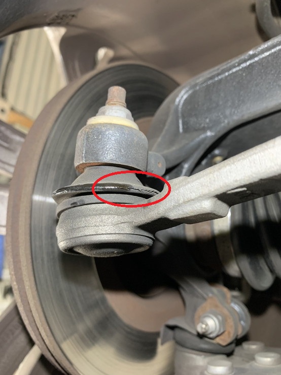足回りの点検を行ったところ、タイロッドエンドのブーツに切れが確認されました。