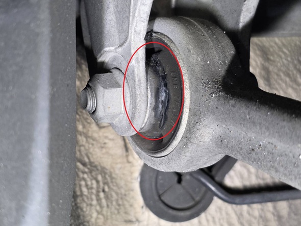 左右4本ありますが、その内の1本のアームブッシュが経年劣化で破損しておりました。