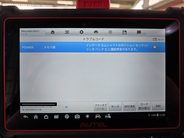 カムポジションセンサーの不具合が記録されておりました。