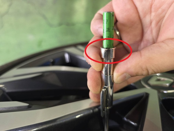 ゲージの切り込みがある個所の下の位置まで低下しており500cc以上少ない状態でした。