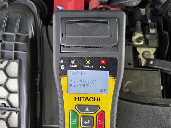 バッテリーテスターで測定を致しました。