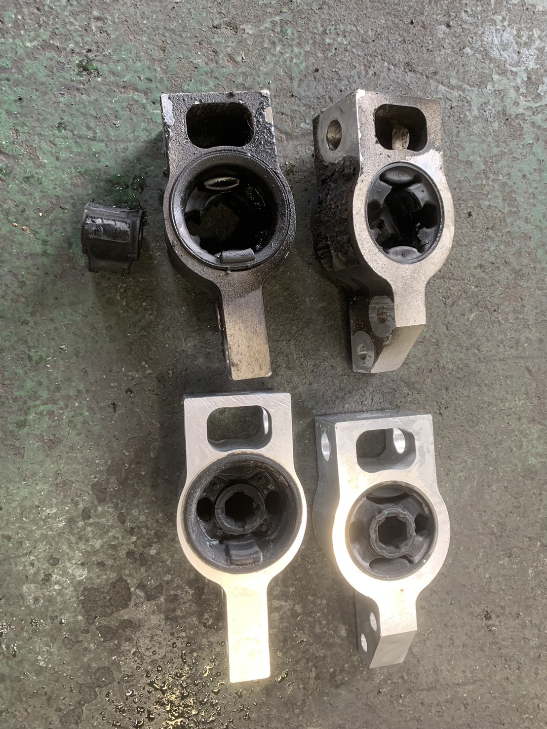 足回りの点検を行ったところ、ロアアームブッシュに切れが確認されました。
