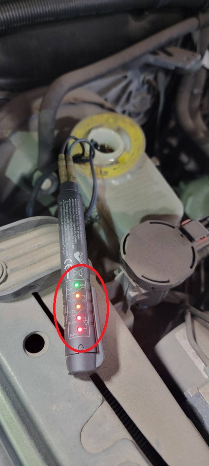 ※写真はオイル内に水分が含まれているかをチェックするテスターでの