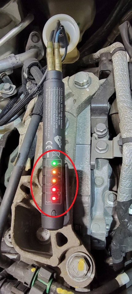 ※写真はオイル内に水分が含まれているかをチェックするテスターでの