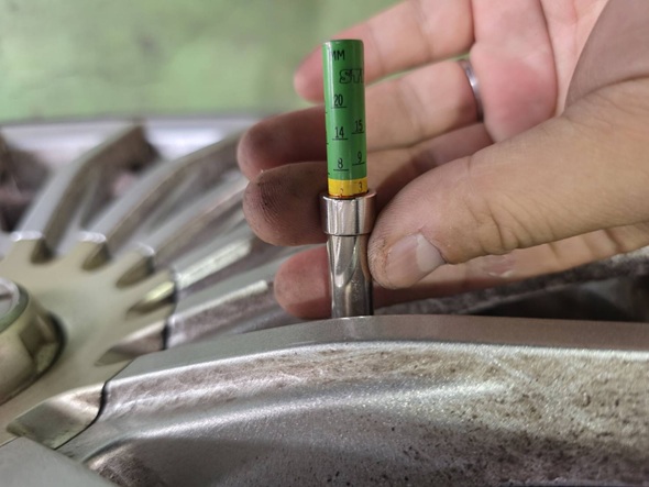 残量計で確認したところリアのブレーキパット残量が3mmでした。