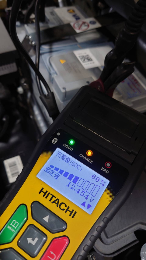 専用テスターでチェックしたところ充電量の数値が60%まで落ちていました。