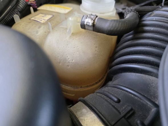 ラジエータータンク内のクーラント液がほぼ空の状態でした。
