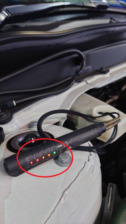 ※写真はオイル内に水分が含まれているかをチェックするテスターでの
