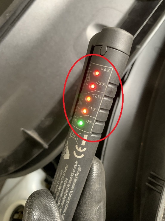 ※写真はオイル内に水分が含まれているかをチェックするテスターでの