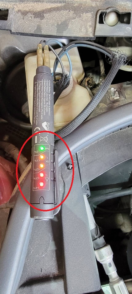 ※写真はオイル内に水分が含まれているかをチェックするテスターでの