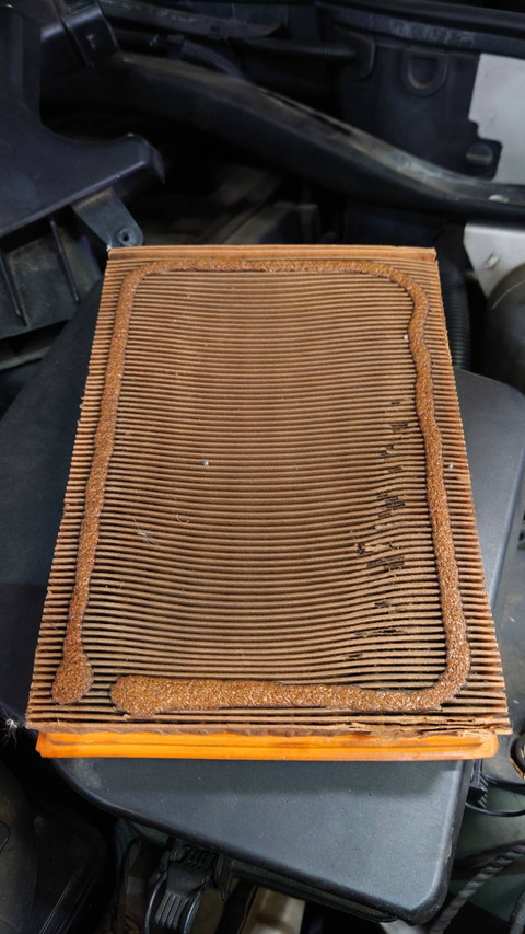 エンジンの吸気効率を高めるため、汚れていたエアーエレメントを交換しました。