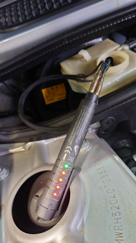※写真はオイル内に水分が含まれているかをチェックするテスターでの