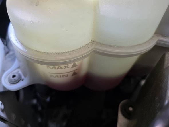 リザーバータンク内のクーラント液がMINより更に低下しておりました。