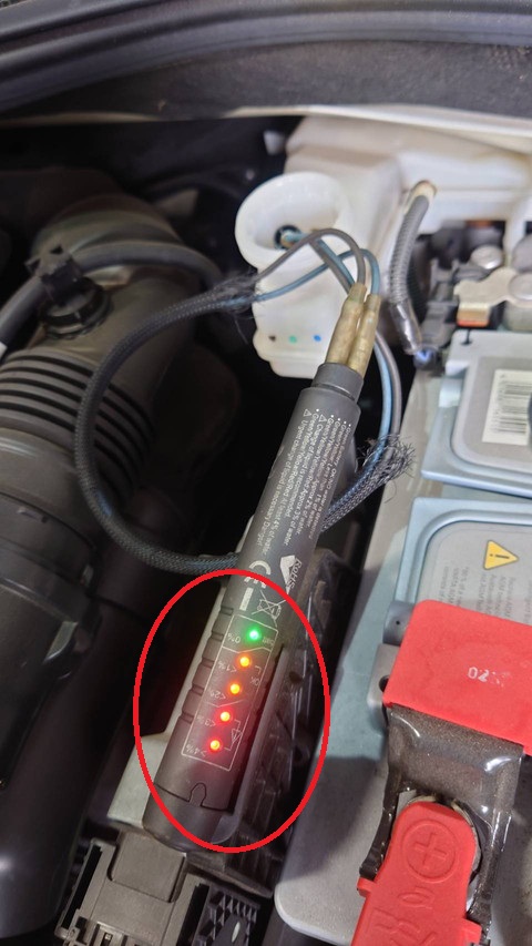 ※写真はオイル内に水分が含まれているかをチェックするテスターでの