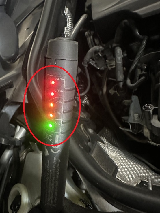 ※写真はオイル内に水分が含まれているかをチェックするテスターでの