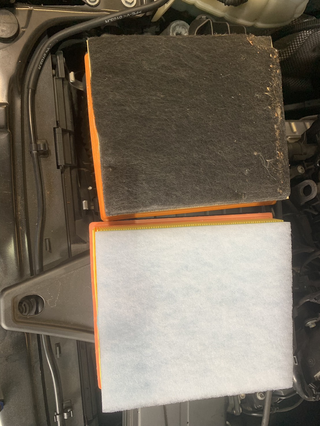 エンジンの吸気効率を高めるため、汚れていたエアーエレメントを交換しました。