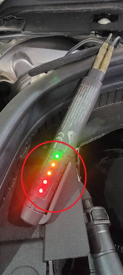 ※写真はオイル内に水分が含まれているかをチェックするテスターでの
