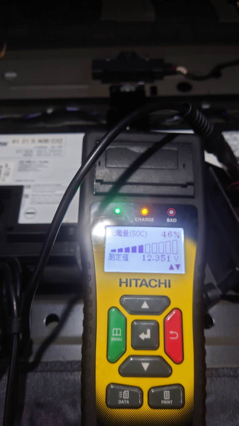 専用テスターでチェックしたところ充電量が46%まで下がっていました。