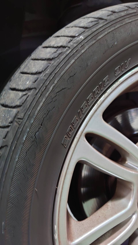 点検の結果、タイヤにひび割れが酷く確認されました。