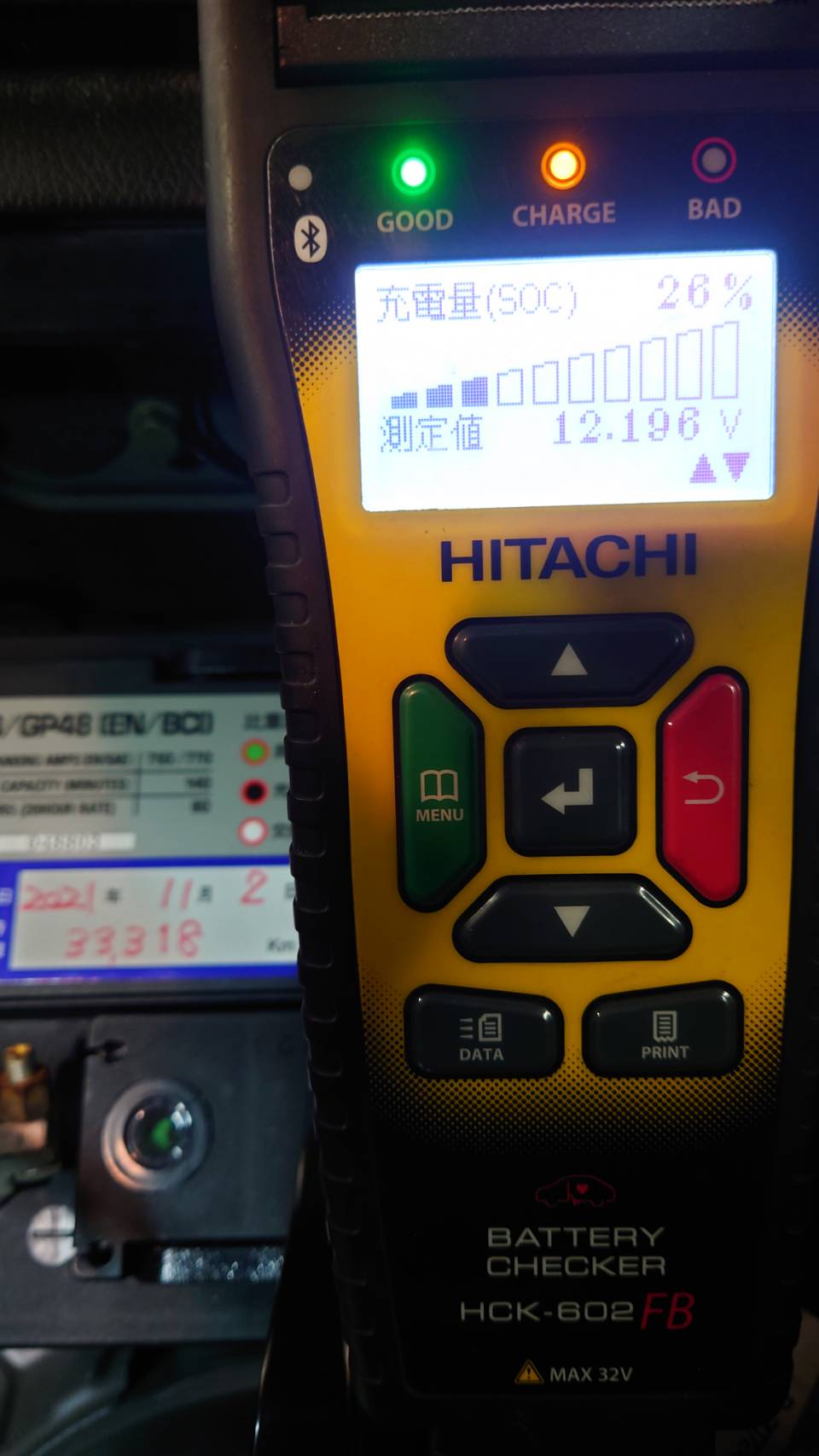 点検の結果、車両のバッテリーに充電量不足が見られたため、交換いたしました。