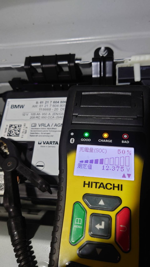 専用テスターでチェックしたところ充電量が50%まで下がっていました。