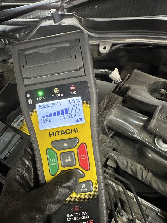 専用テスターでチェックしたところ充電量が少し下がっていたため