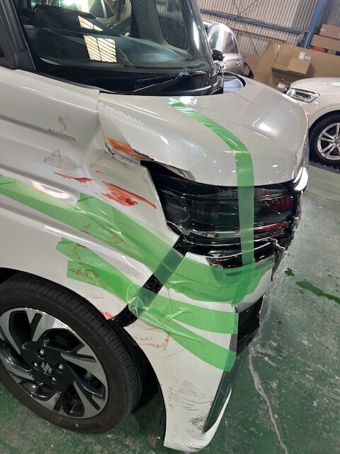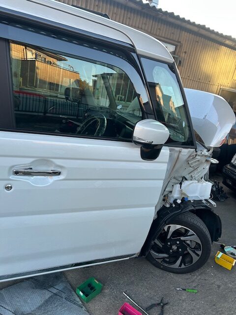 今回はスズキのスペーシアのフロント廻りの修理を行いました。