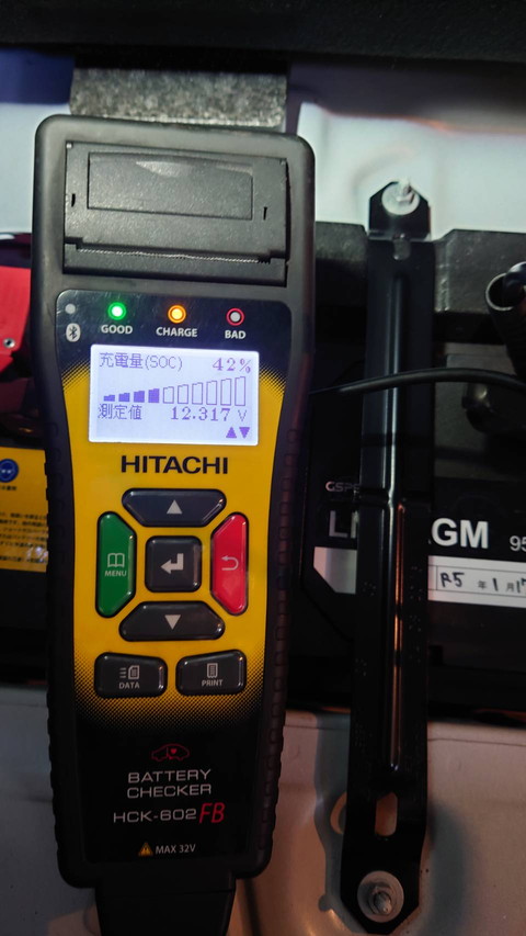 専用テスターで診断したところ充電量の数値が下がっていました。