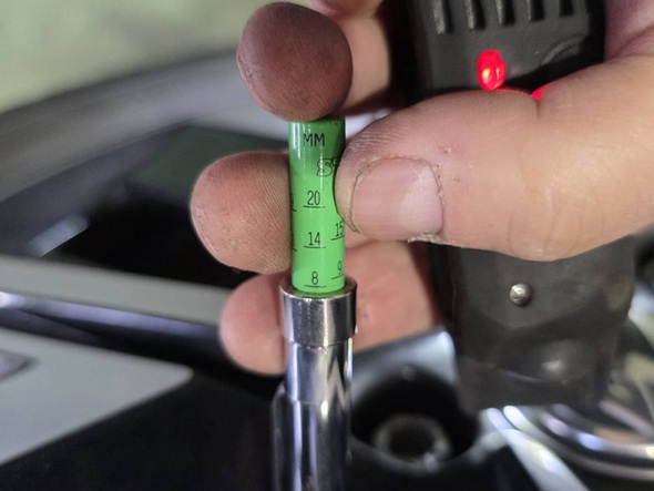 1.6mmの残量を下回ると検査に影響がございますが3mm台になった段階で交換の時期に入ります。