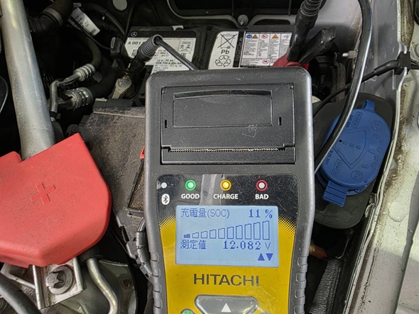 ご入庫時の測定値 12.082v リフレッシュ充電後の安定した数値は12.8v程度になりました。