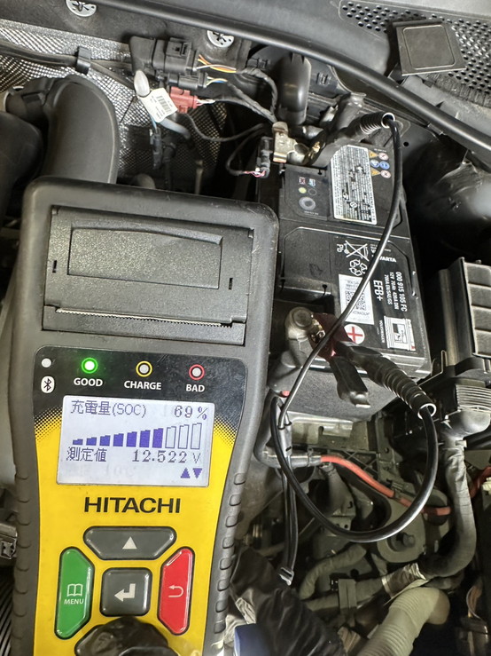 専用テスターで診断したところ充電量の数値が下がっていたため