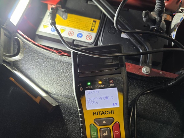 バッテリーテスターにて測定診断を致しました。
