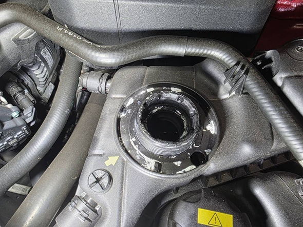 リザーバータンクのキャップ周りにクーラント液が漏れて結晶化した白い粉がありました。