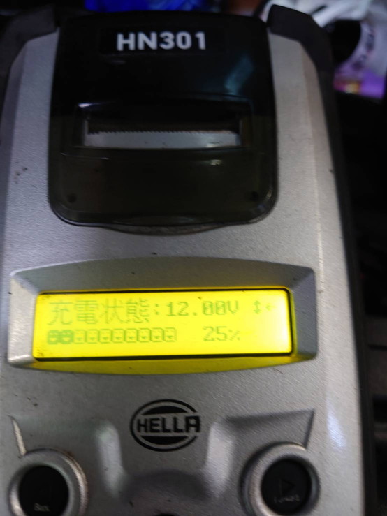 点検の際、バッテリーのテスター診断を行ったところ、充電量が25%という非常に低い数値でした。