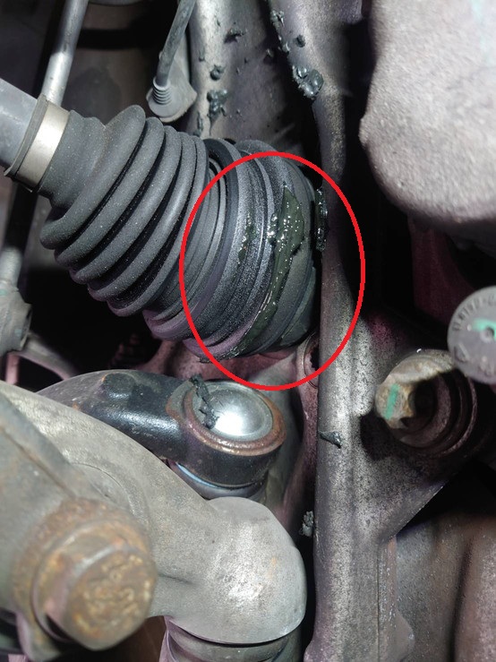 ブーツが破れて中のグリスが漏れ出したり、砂や水が浸入したりすると、ドライブシャフト本体の異音や故障に繋がります。