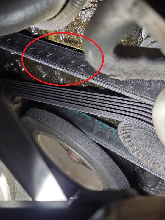 ベルトにオイルが付着すると滑りや早期劣化の原因となり、最悪の場合はベルトが切れて走行不能に陥るリスクがあります。