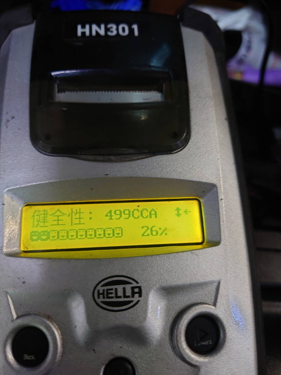 点検の際、バッテリーのテスター診断を行ったところ、健全性が26%という非常に低い数値でした。