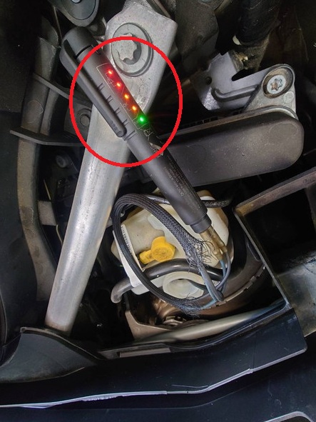 当社では車検毎の交換を推奨しています。※写真はオイル内に水分が含まれているかをチェックするテスターでの計測です。