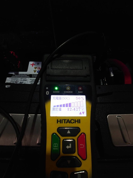 バッテリーの点検を行ったところ、健全性は100%でしたが充電量が56%まで低下していたため交換しました。