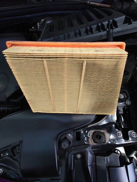 エンジンに取り込む空気をろ過するフィルターです。メンテナンスとして交換しました。