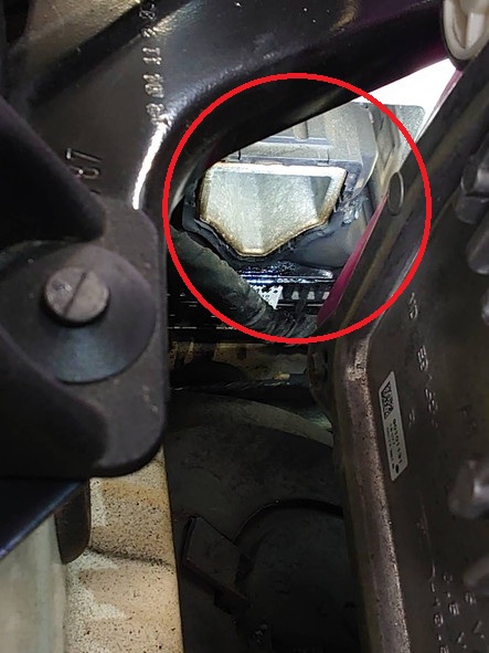 エンジンマウントの点検を行ったところ、経年劣化によりゴム部分が破損していたため交換しました。