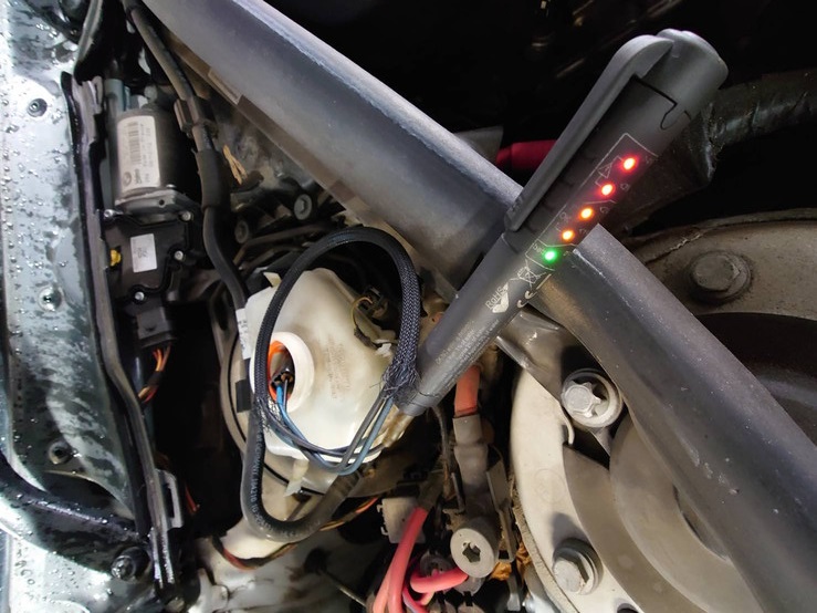 当社では車検毎の交換を推奨しています。テスターで測定したところ、水分の混入が認められたため交換を行いました。