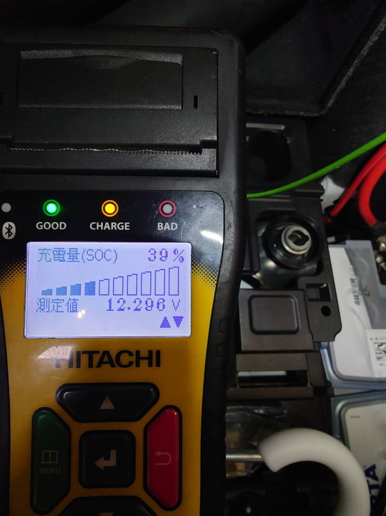 バッテリーの点検を行ったところ、健全性は100%でしたが、充電量が39%まで低下していました。