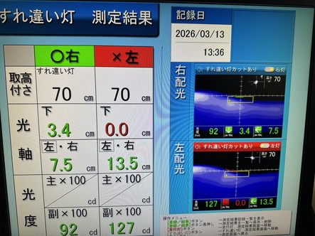 光軸調整を実施し基準値内に収め、再検査にて無事合格となりました。