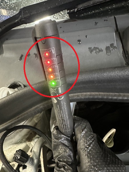 ※写真はオイル内に水分が含まれているかをチェックするテスターでの計測です。