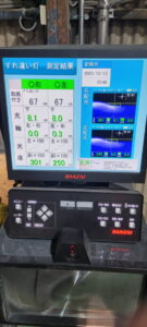 ヘッドライトの光軸をテスターで測定し、調整を行いました。