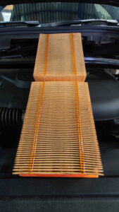 エンジンの吸気効率を高めるため、汚れていたエアーエレメントを交換しました。