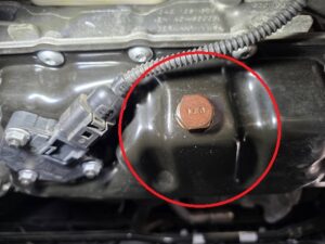 エンジンオイルパンのドレーンパッキンからオイル滲みがありました。
