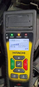 専用テスターでチェックしたところ充電量が49%まで落ち込んでいたため交換となりました。